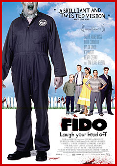 We have been following the development of this film since first hearing about it. What an amazing journey this film has been through. Fido stars Billy Conolly, Carrie Anne Moss and K' Sun Ray in a whacky, roundabout comedy about life, love, (un)death, friendship and the human spirit. "Welcome to Willard, a small town lost in the idyllic world of the 50's, where the sun shines every day, everybody knows their neighbor, and rotting zombies deliver the mail. Timmy Robinson doesn't think so. At eleven, Timmy already knows the world is phony baloney - Mom and Dad just won't admit it. Now ZomCon's head of security has moved in across the street, and Timmy's Mom refuses to be the only housewife on the block who doesn't have a zombie of her own. When she brings a zombie servant home, Timmy discovers a new best friend, and names him Fido. And even though Dad has a bad case of zombie-phobia, Timmy is determined to keep Fido, even if he does eat the odd person... Sometimes, it takes a dead man to teach us all what it means to be alive." There was an advance screening of Fido in Vancouver on March 15th and from what I have heard, it was quite the good time. There were zombies handing out promotional materials, a Vancouver based zombiewalk was organized to coincide with the screening. Sounds like a blast. Fido opened in Canadian theaters on March 16th, 2007 and will be opening in US theatres on June 15th. |