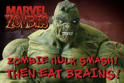Diamond Select Toys and Marvel have teamed up to bring the wickedly popular Marvel Zombies universe to 3-D by way of 7-inch undead action figures, statues and minimate figures! Three figures have been announced thus far, Hulk (shown above), Colonel America and Spiderman. Each figure in the series will be packed with pieces of the doomed Silver Surfer. By collecting each figure, you can create the gruesome remains of Silver Surfer.